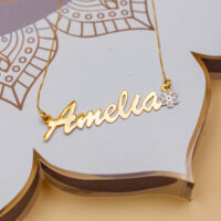 Collana bimba in oro giallo 18 kt con incisione personalizzabile.